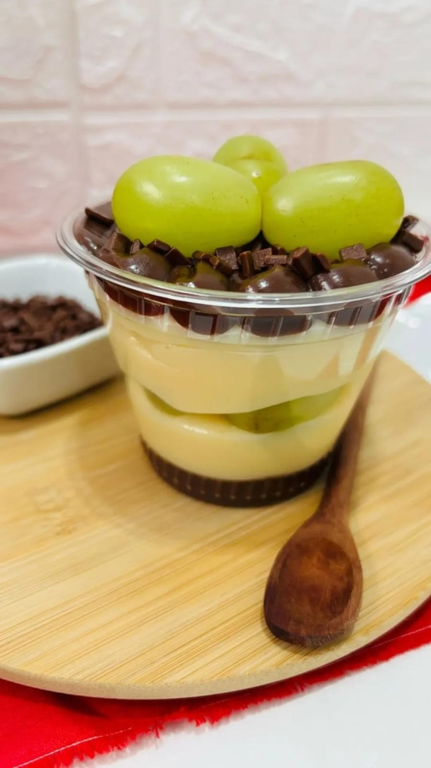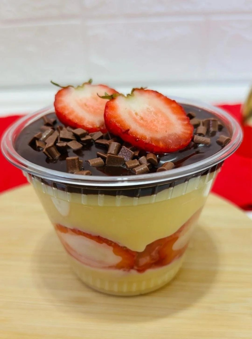 Um delicioso pote com brigadeiro, leite Ninho, Negresco, mousse de leite Ninho, ganache de chocolate e Negresco.obs: pote 380 ml