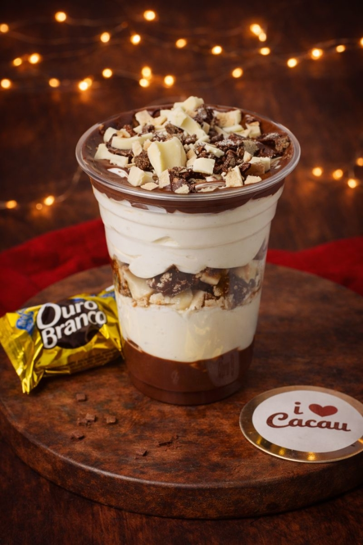 Esse é para amantes de Ouro Branco.Um delicioso pote tentação com brigadeiro, leite Ninho, Ouro Branco, mousse de Ninho, ganache de chocolate e pedaços de Ouro Branco por cima.Obs: 380 ml