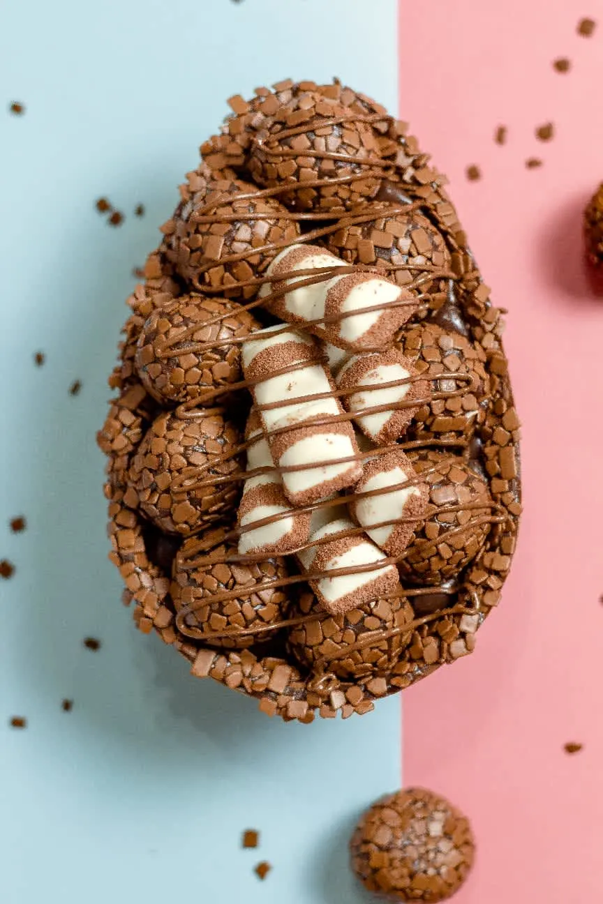 Ovo casca ao leite, recheio de brigadeiro, decorado com brigadeiros belga callebaut e pedaços de kinder bueno white e tiras de nutella. Escolha o tamanho desejado. 🚨🚨 Atenção 🚨🚨 Agendar para as datas disponíveis 14,15,16,17,18,19