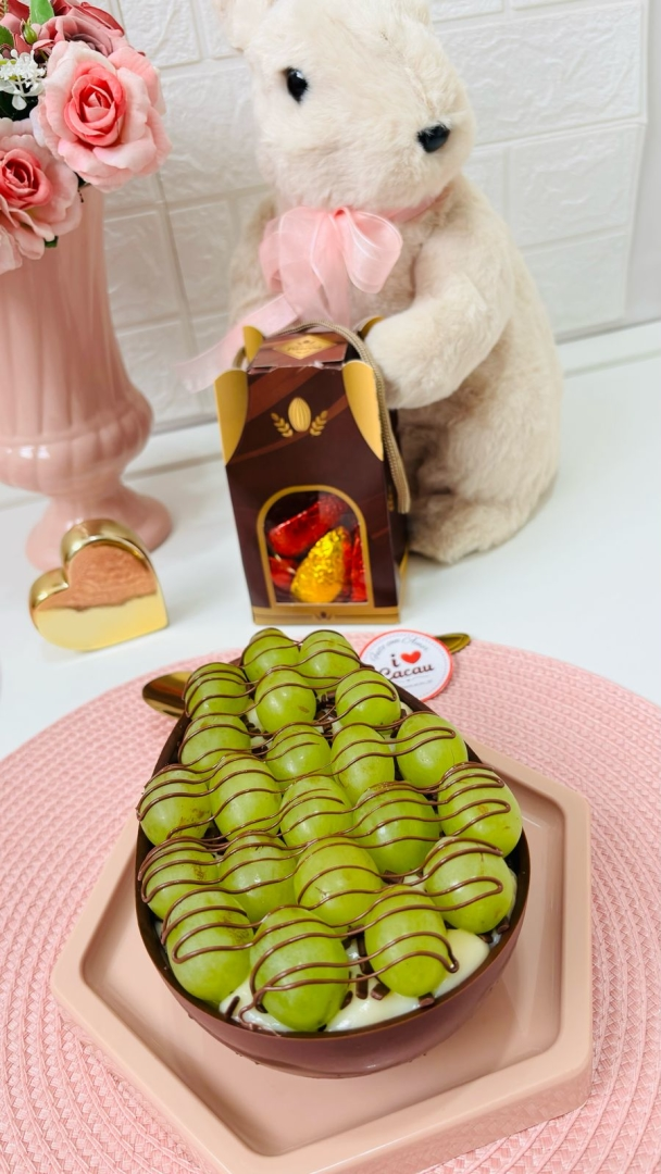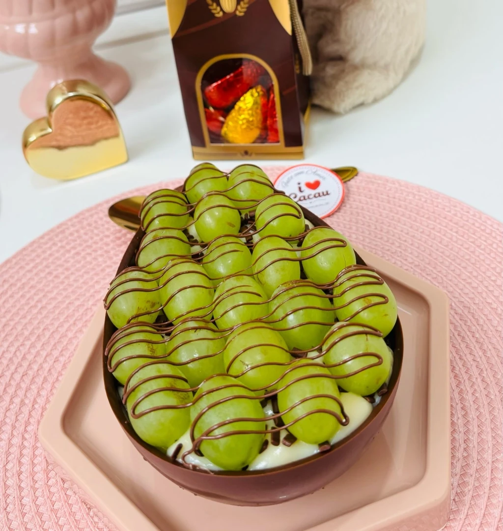 Ovo casca ao leite, recheio de brigadeiro, decorado com uvas e tiras de nutella. Escolha o tamanho desejado. 🚨🚨 Atenção 🚨🚨 Agendar para as datas disponíveis 14,15,16,17,18,19